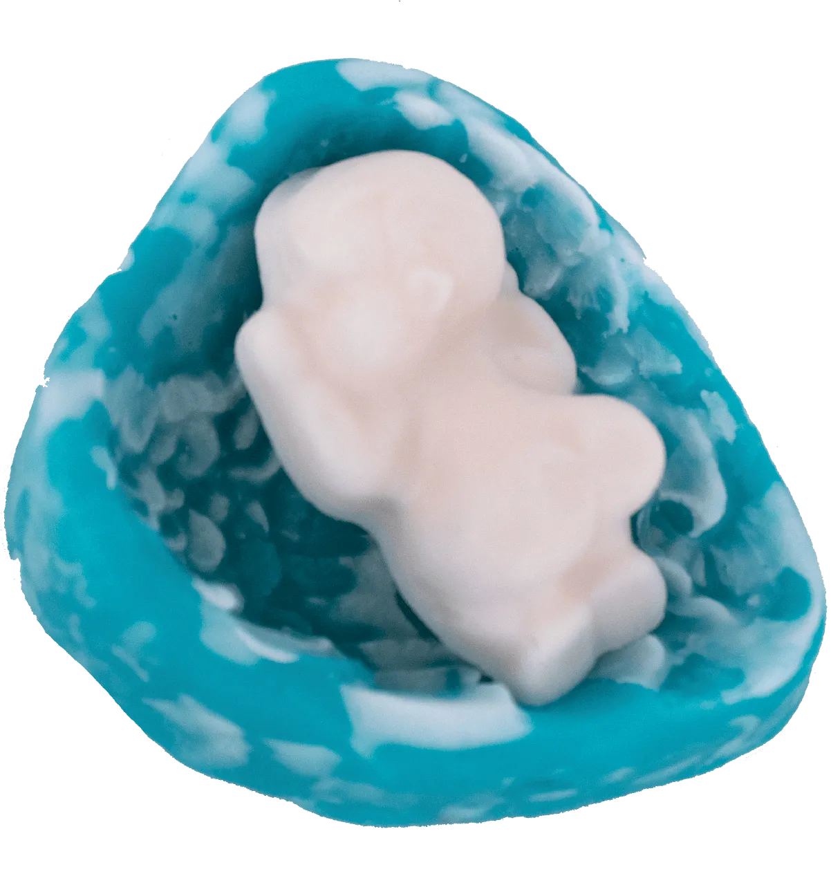 Incluye un jabón artesanal hipoalergénico con forma de bebé dentro de unas alas de corazón, con una caja kraft de: 11x11x3.5 cm