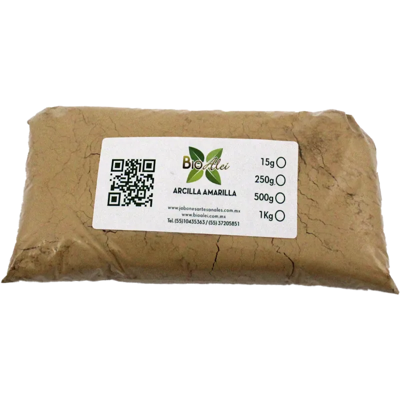 La arcilla caolín amarilla es un mineral natural de grano fino, rico en caolinita y óxidos de hierro que le otorgan su color característico. Es ideal para mascarillas y tratamientos cosméticos por sus propiedades purificantes, absorbentes y suavizantes. Apta para pieles sensibles y mixtas.