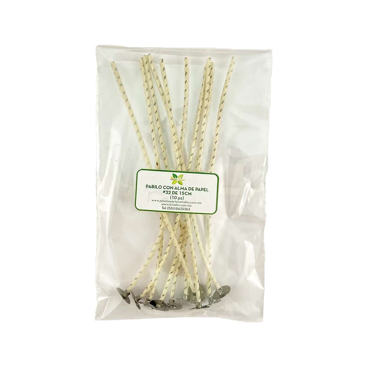 Pabilo con alma de papel #32 15cm para velas de 5cm a 8cm de circunferencia 10 Piezas