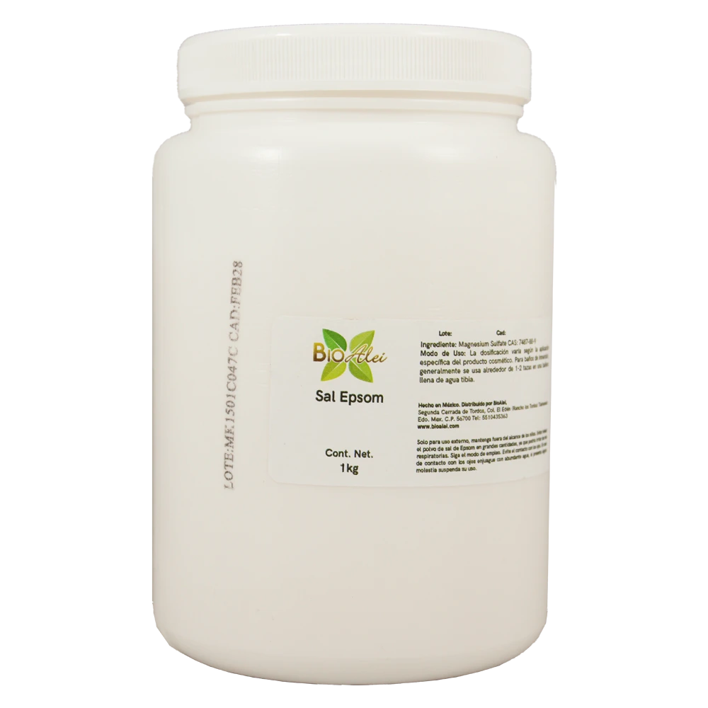 Descripción: La Sal Epsom, también conocida como sulfato de magnesio, es una sal mineral compuesta por magnesio y azufre. Se presenta en forma de cristales blancos o incoloros, y es soluble en agua.
