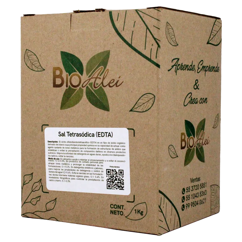 El ácido etilendiaminotetraacético (EDTA) es un tipo de ácido orgánico derivado del etanol cuya principal propiedad química es su capacidad de actuar como agente quelante de iones metálicos para la formación de estructuras de anillos que estabilizan o evitan la precipitación de compuestos dañinos en diversos productos químicos. Mejora la actividad del detergente en aguas duras, ayuda a los blanqueadores ópticos, evitar la rancidez.